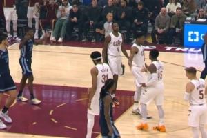 开场就是高难度!米切尔借掩护挂着韦尔斯命中打板三分还加罚!
